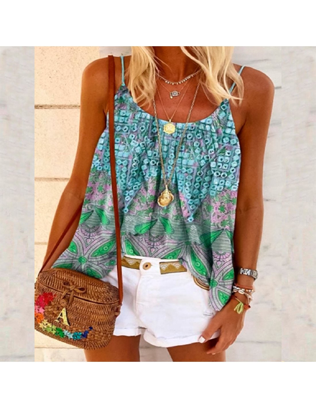 Blusa sin mangas de verano con diseño de colores vibrantes para dama |