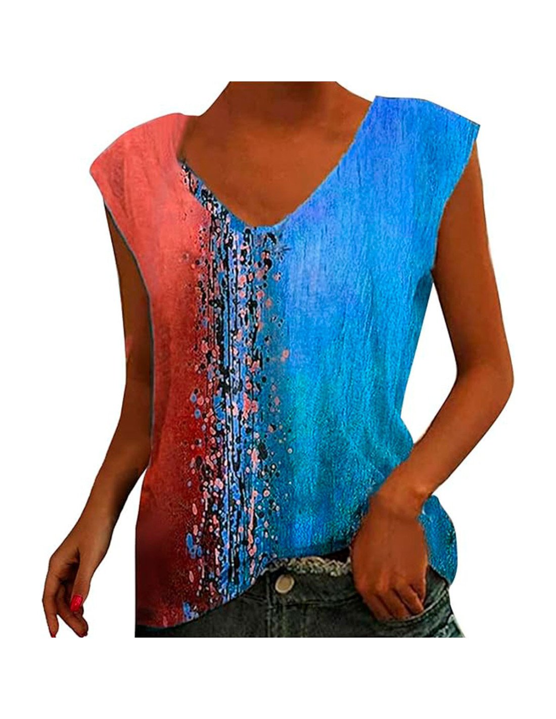 Sumérgete en el verano con esta blusa de diseño artístico para dama. Presenta un vibrante estampado de colores vivos que combina tonos turquesa y naranja, creando un look fresco y llamativo. Confeccionada en un material ligero y cómodo, es perfecta para los días cálidos. Su corte holgado y cuello en V le dan un toque moderno y desenfadado. Ideal para combinar con jeans o shorts, esta blusa es una adición imprescindible para tu guardarropa de verano. Disponibilidad en mayoreo para que todas puedan disfrutar del estilo único de LHESH. |