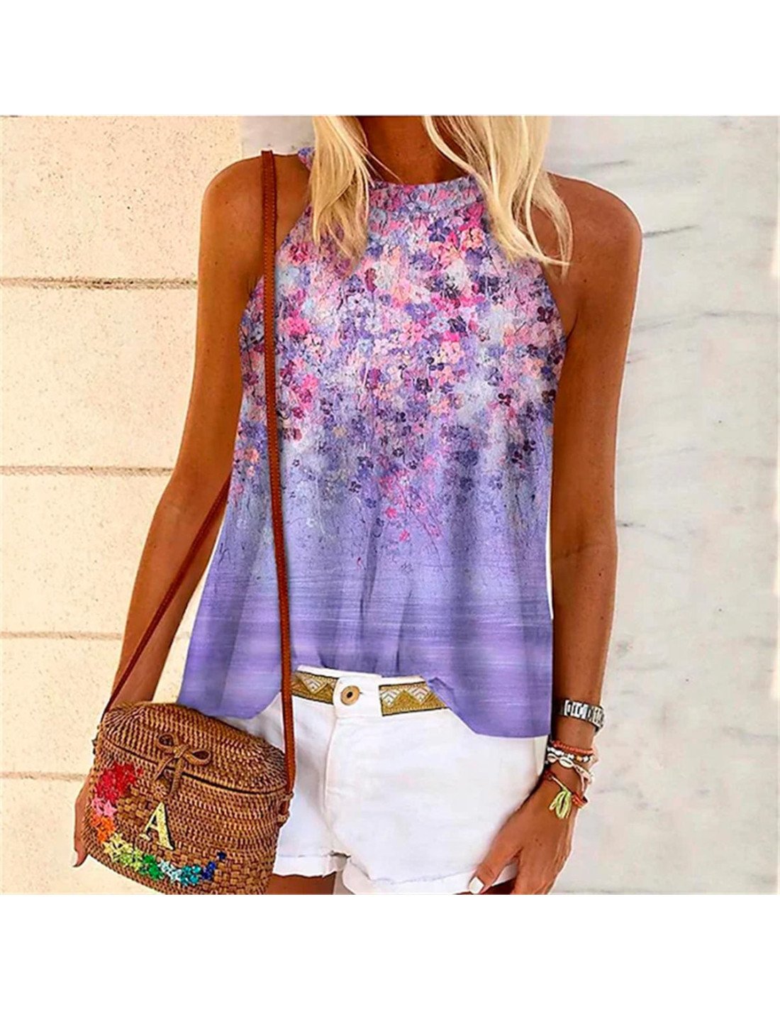 Blusa sin mangas de verano con estampado floral para dama |