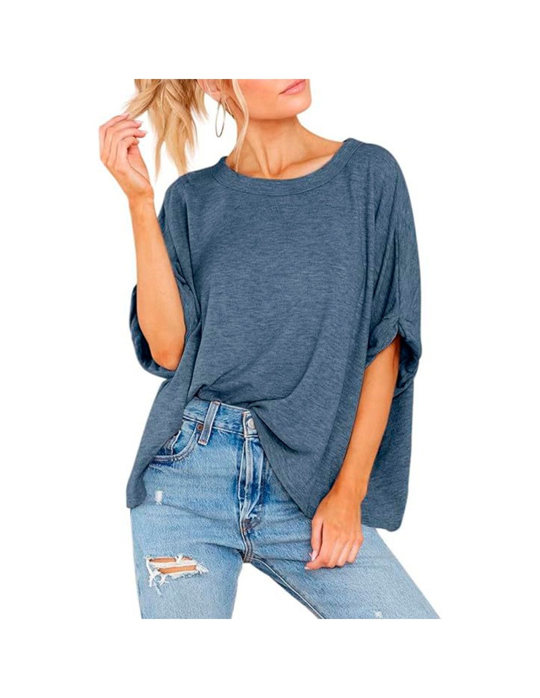Explora la perfecta fusión de estilo y comodidad con esta blusa de manga corta para dama. Confeccionada en un tejido suave y transpirable, esta blusa con cuello en V ofrece un ajuste relajado ideal para los días cálidos. Su diseño sencillo pero elegante la convierte en una prenda versátil que se adapta a cualquier ocasión casual. Perfecta para combinar con jeans o faldas, esta blusa se convertirá en un básico imprescindible en tu guardarropa.