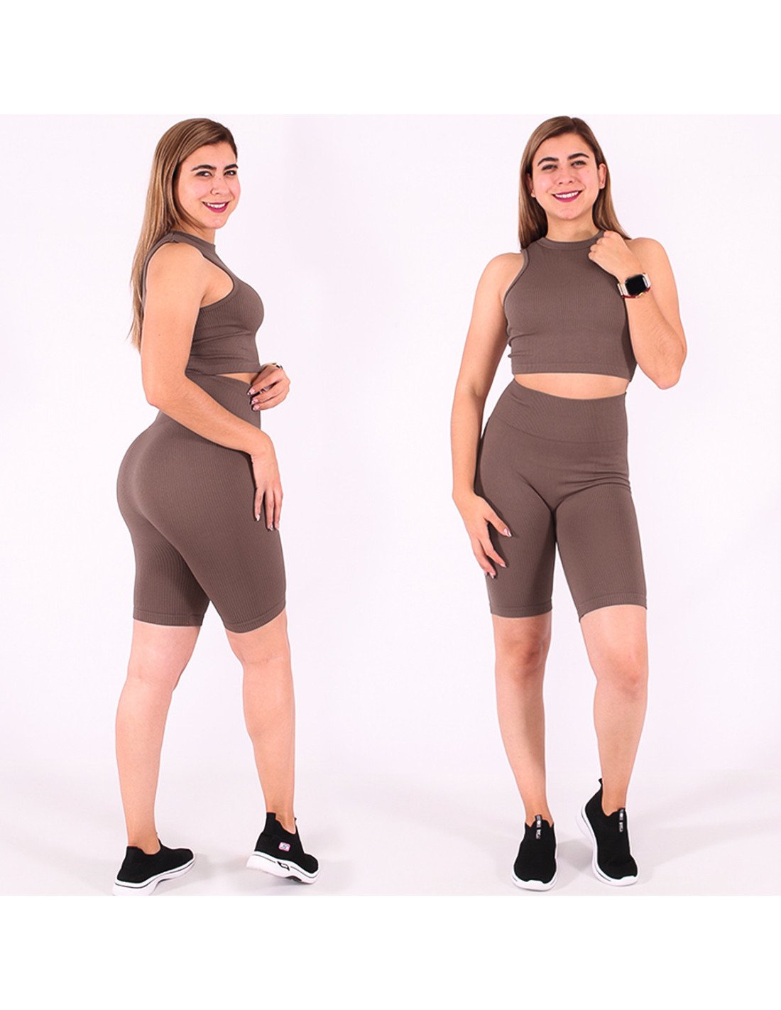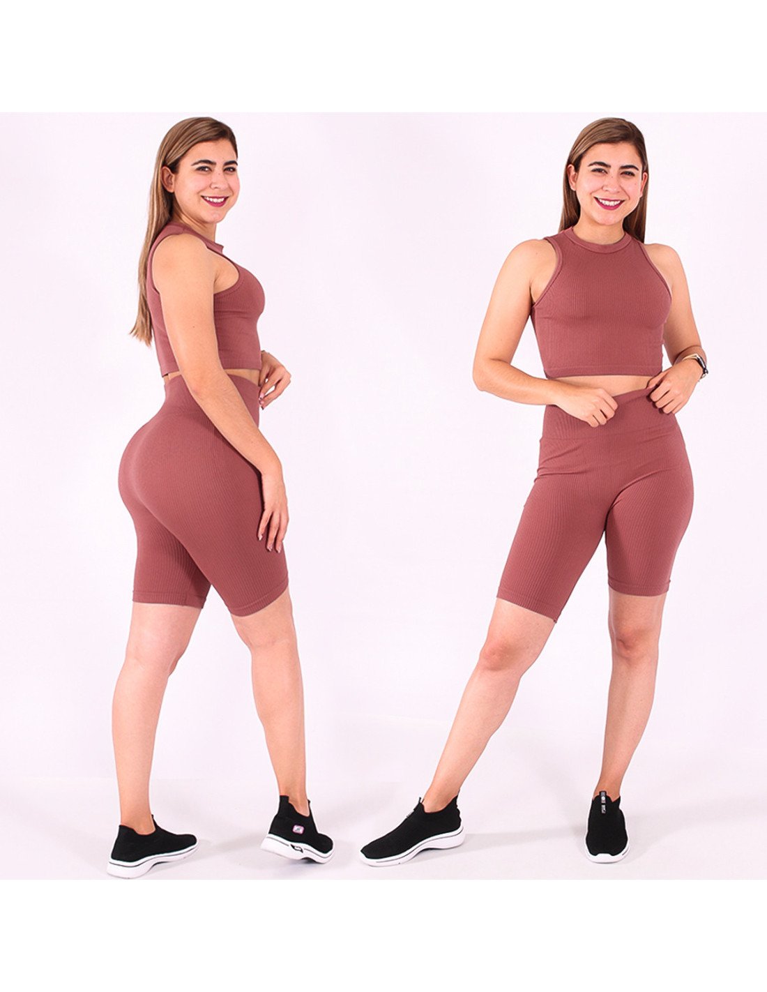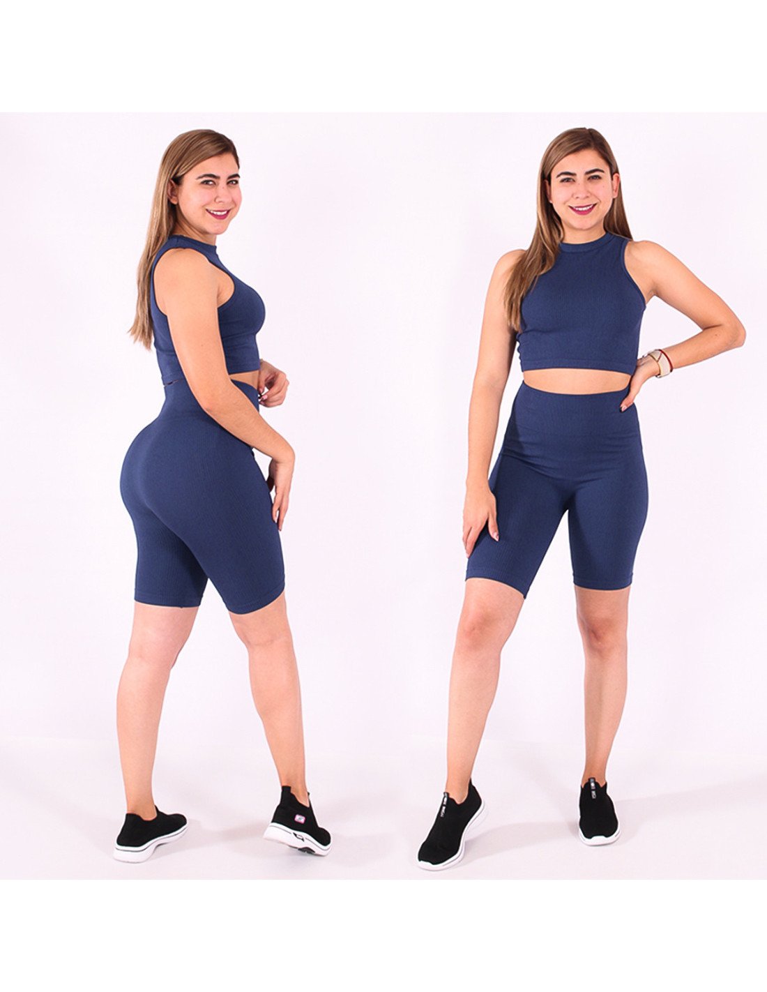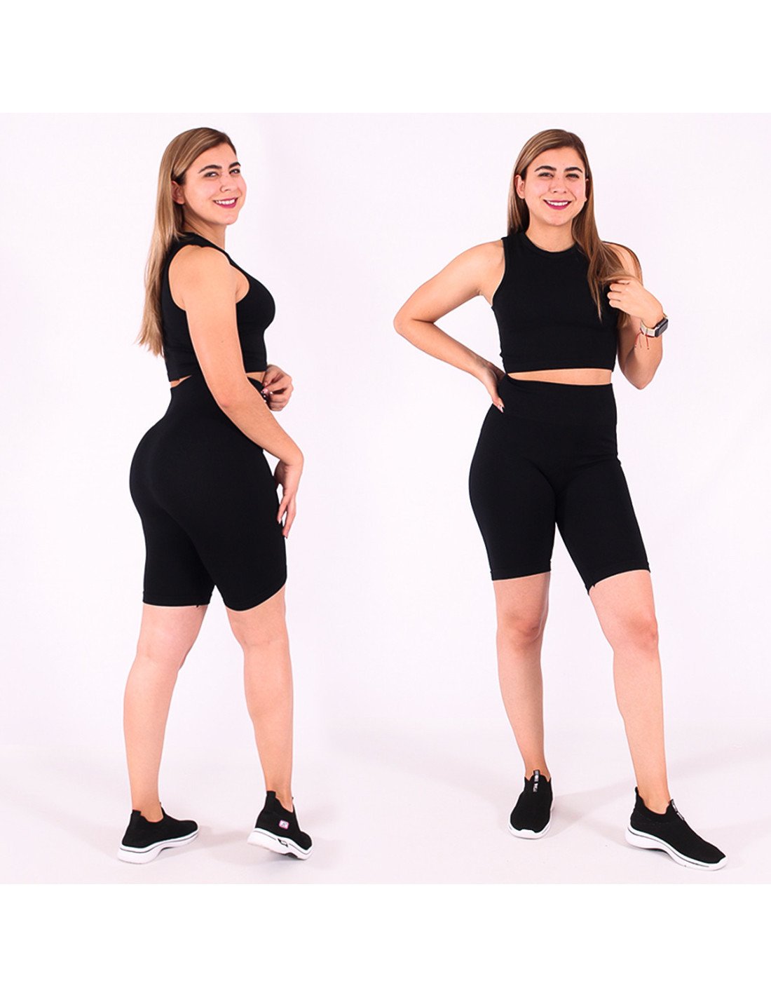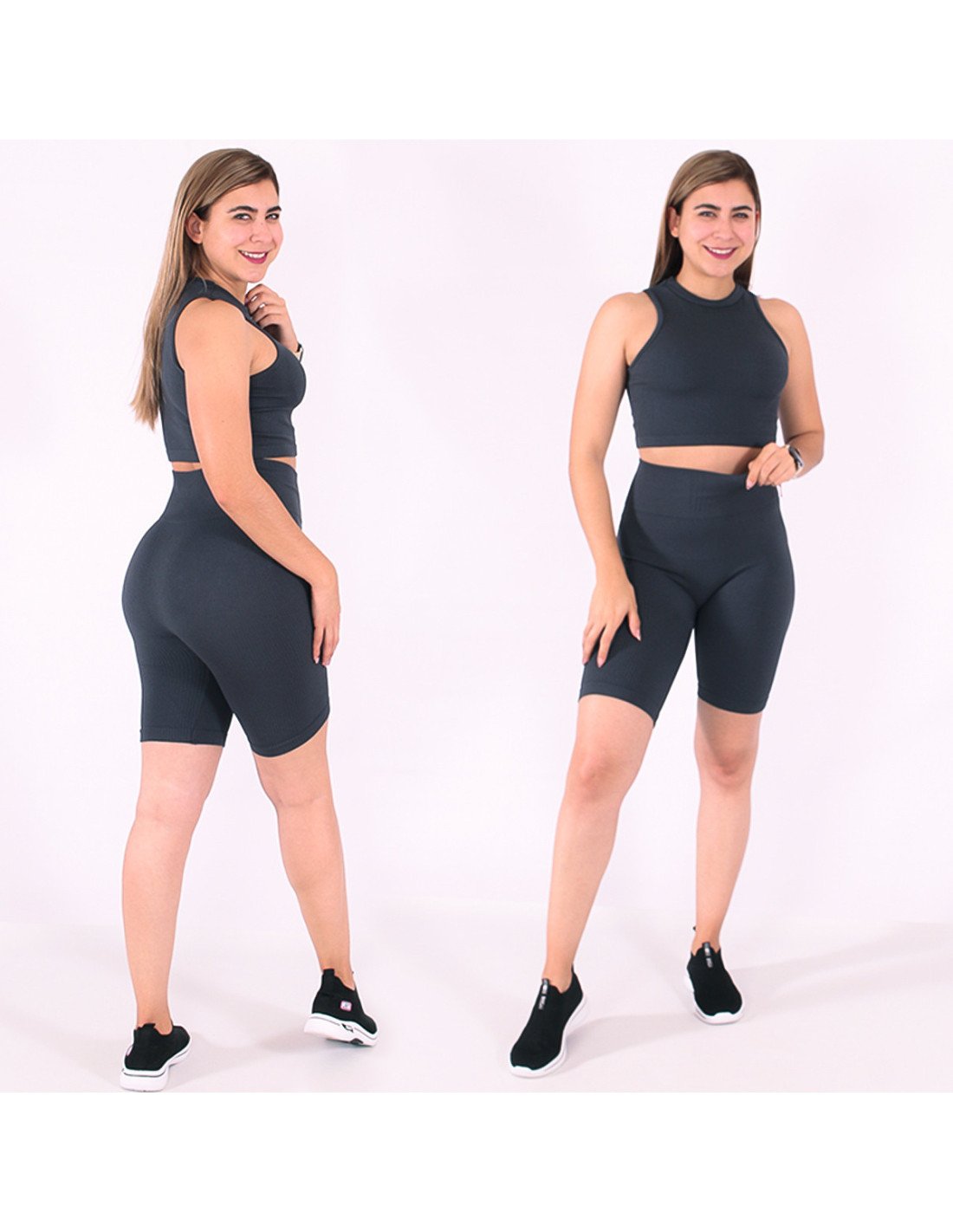Prendas atléticas diseñadas para brindar comodidad y rendimiento durante actividades físicas intensas. Ofrecen un equilibrio entre estilo y funcionalidad, siendo una elección popular entre los entusiastas del deporte y el fitness. Short biker de talle alto y camiseta top |