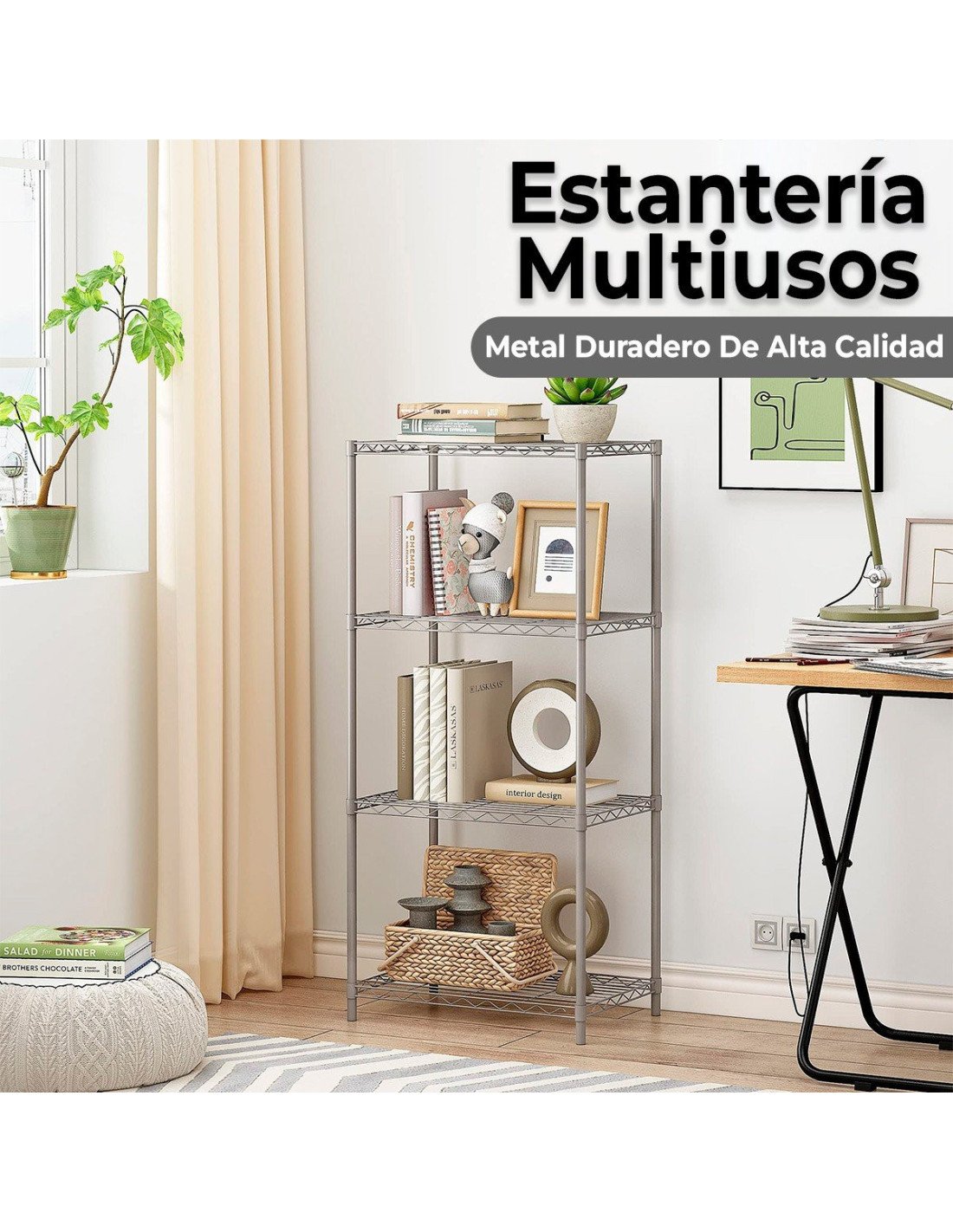 La estantería de alambre cuenta con una construcción de acero duradero que resiste la acumulación de suciedad y la corrosión. Fácil de armar, no requiere herramientas. La construcción de metal resistente puede soportar objetos pesados. Los estantes con altura ajustable hacen un uso eficaz del espacio de almacenamiento. El recubrimiento de polvo negro protege la estantería de alambre del agua y la oxidación. Fácil de limpiar. Los pies niveladores son adecuados para terrenos irregulares. |
