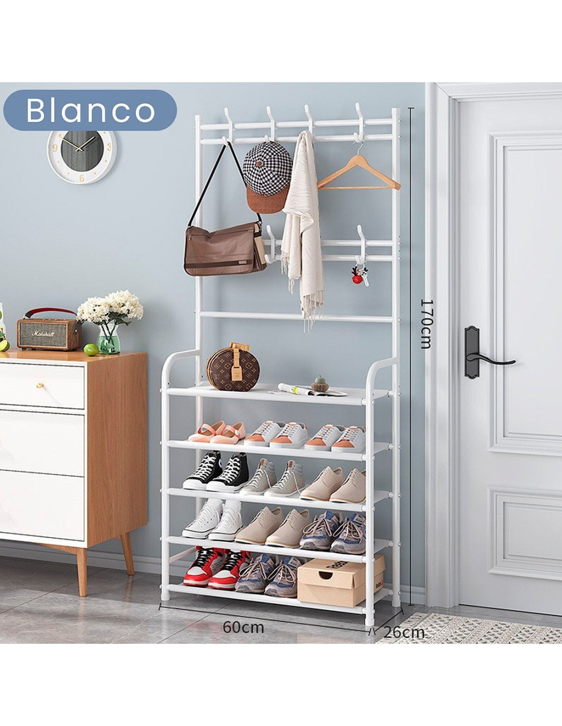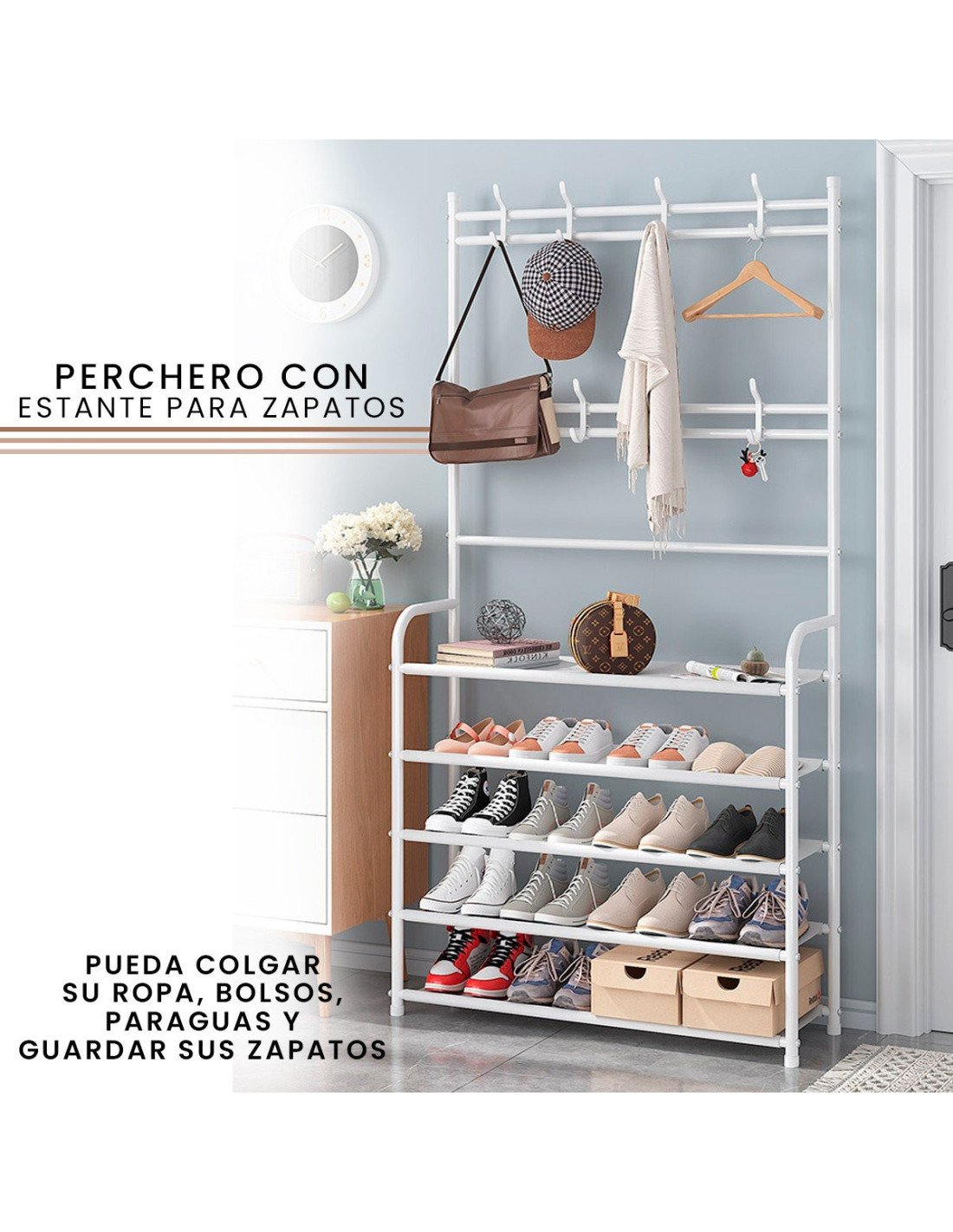 | Perchero y un zapatero con 5 niveles de estantes para zapatos y 8 ganchos extraíbles. | |