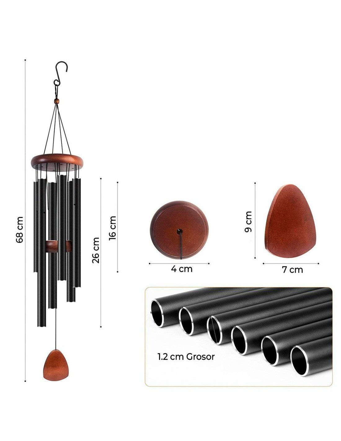 Esta campana de viento conmemorativo presenta elementos de diseño únicos, que a menudo incluyen colgantes grabados, amuletos, que sirven como hermosos recordatorios de los preciados recuerdos de los difuntos. El color negro agrega una elegancia discreta y simplicidad. La campana de viento tiene un significado cultural como símbolo de paz, curación y espiritualidad, y sirve como un reconfortante recordatorio de los seres queridos que han partido. Su diseño único puede presentar colgantes grabados, amuletos o acentos de colores, lo que agrega elegancia y simplicidad a su apariencia. |