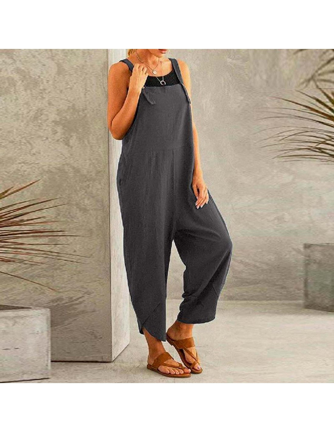 Disfruta del verano con estilo y comodidad con nuestro mono jumpsuit holgado de tirantes para mujer. Confeccionado en algodón y poliester suave, este jumpsuit de color sólido es simple y a la moda, perfecto para cualquier ocasión. |
