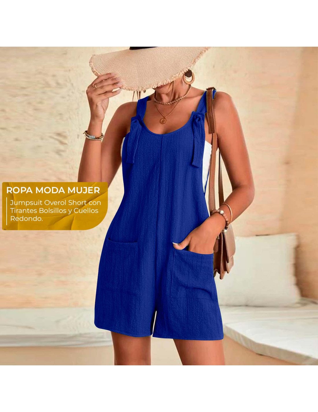 Moda plus jumpsuit overol corto con tirantes para dama al mayoreo - ID 43622 azul