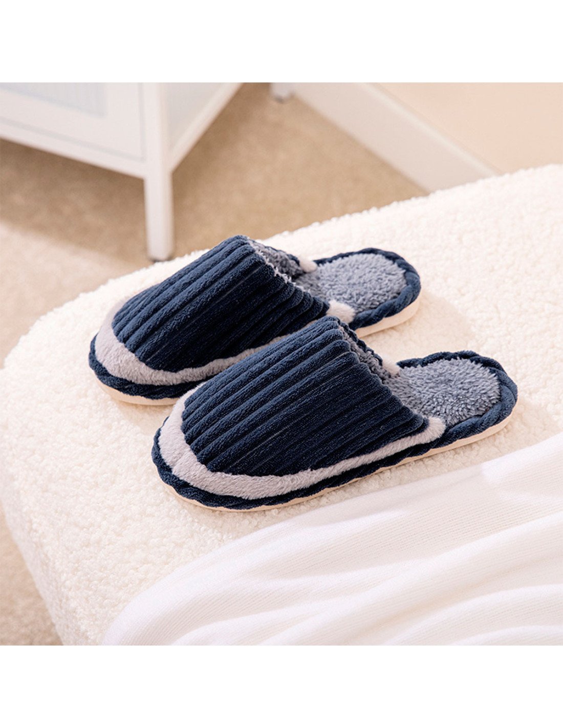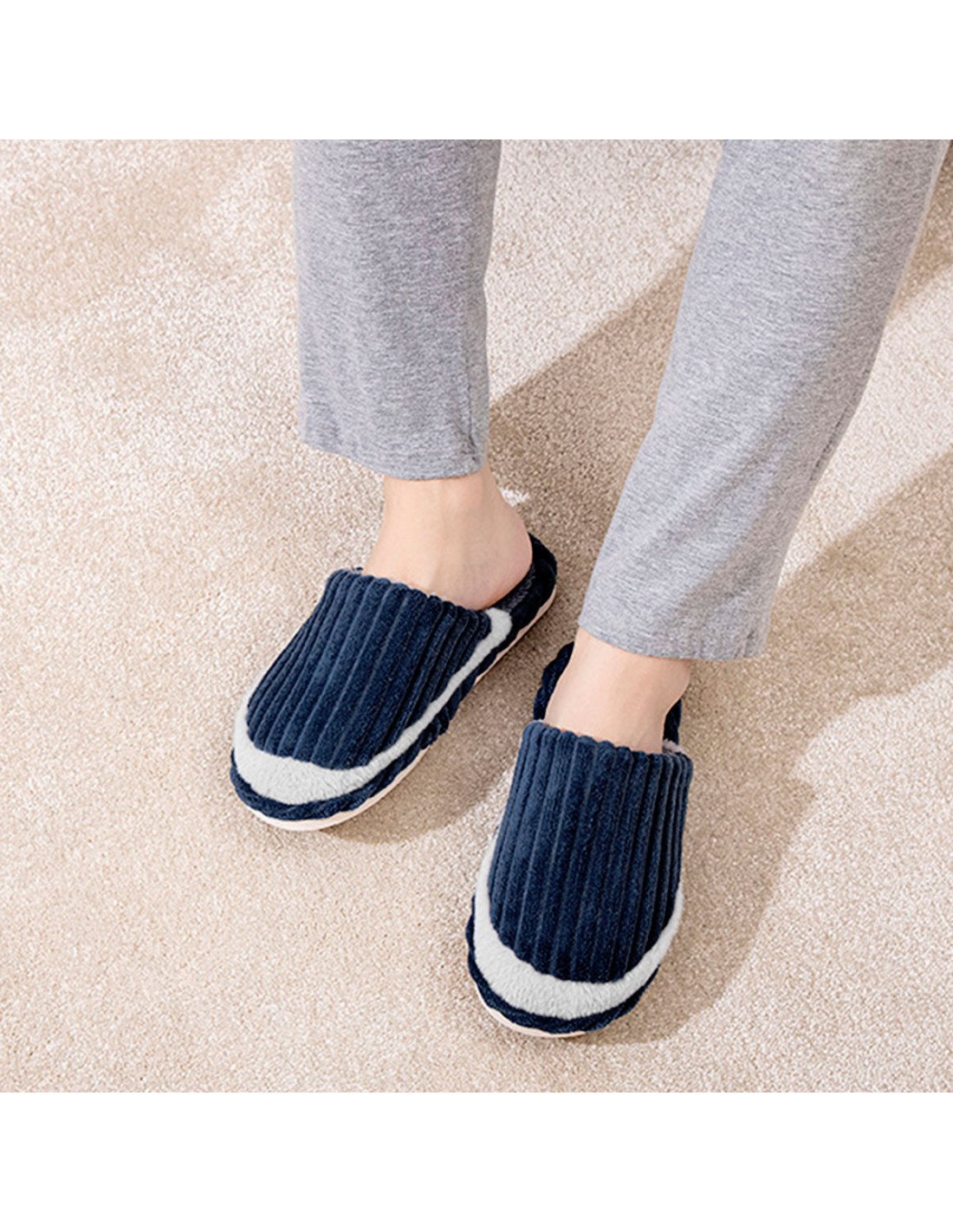 Adopta un diseño liso, que es simple pero también popular. Con material de alta calidad, su plantilla acojinada te da la comodidad para andar por toda la casa. Su suela rígida ofrece una alta durabilidad y seguridad al caminar. |