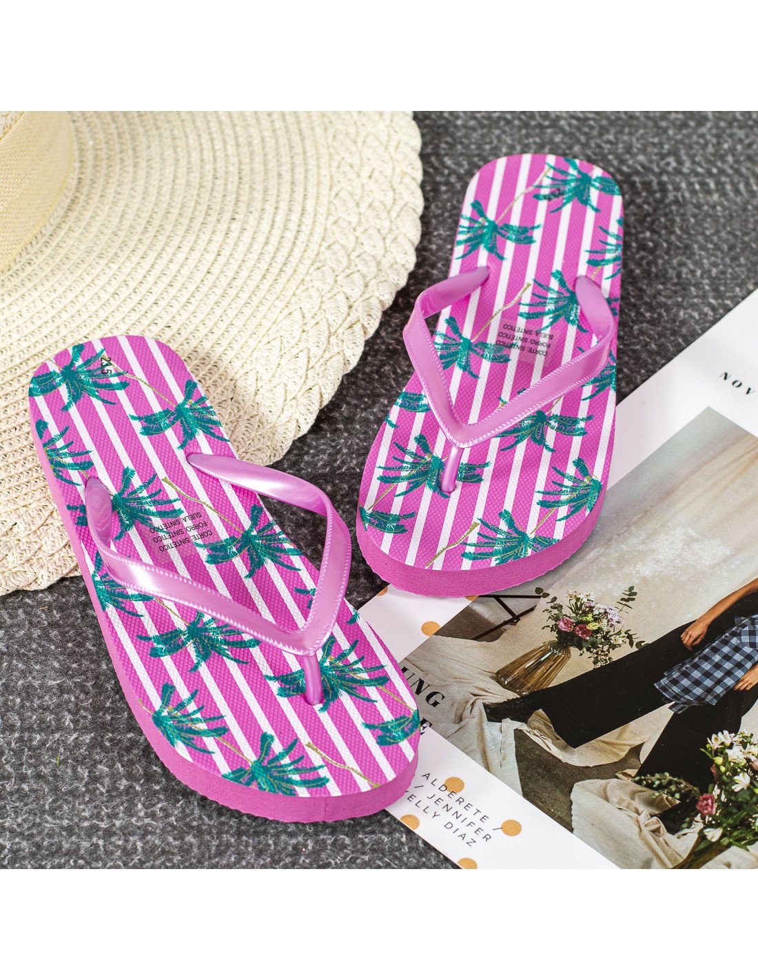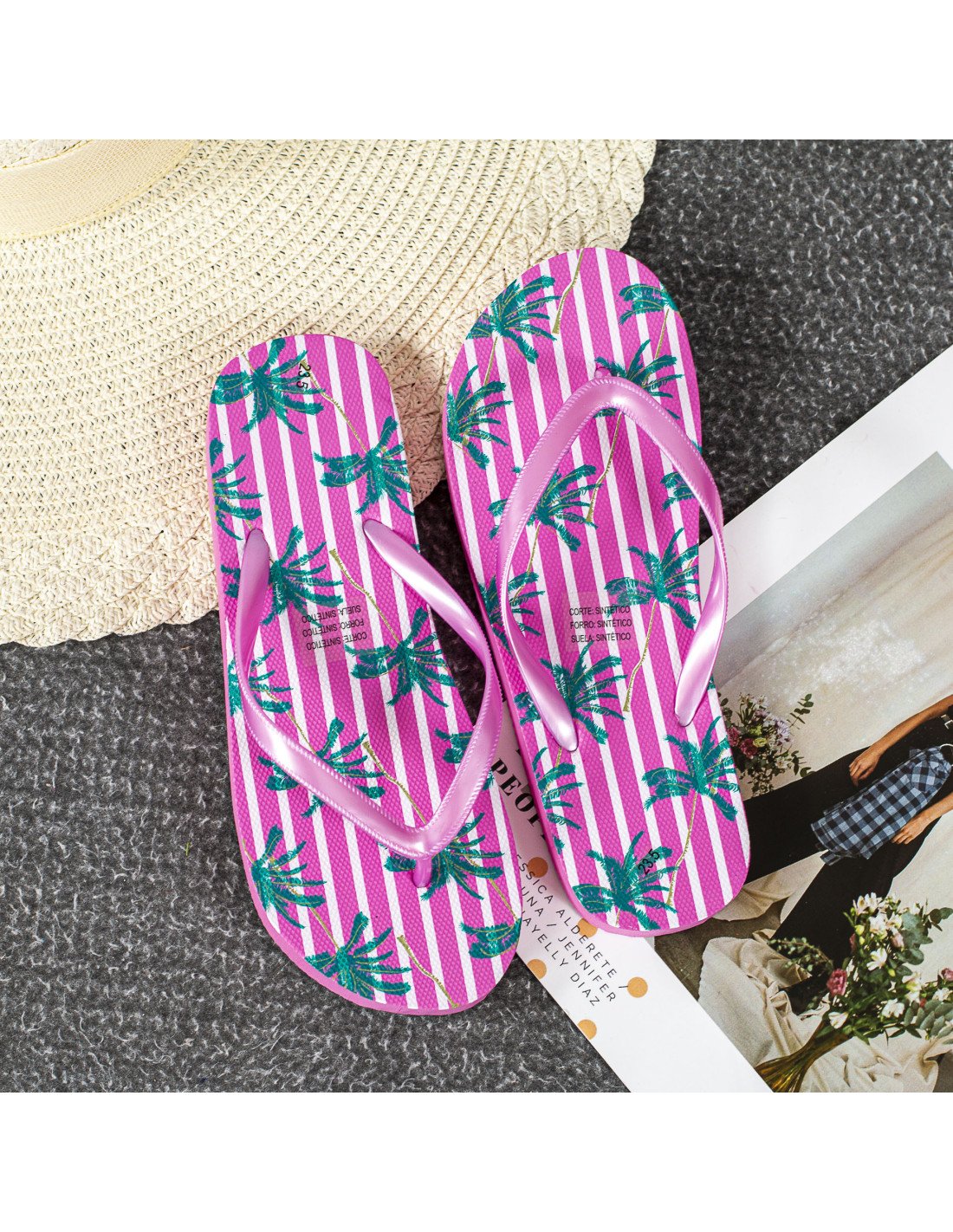 Sandalias de playa para dama HFW-971-3 23/25.5, ID 35491 fiusha estampado de palmeras