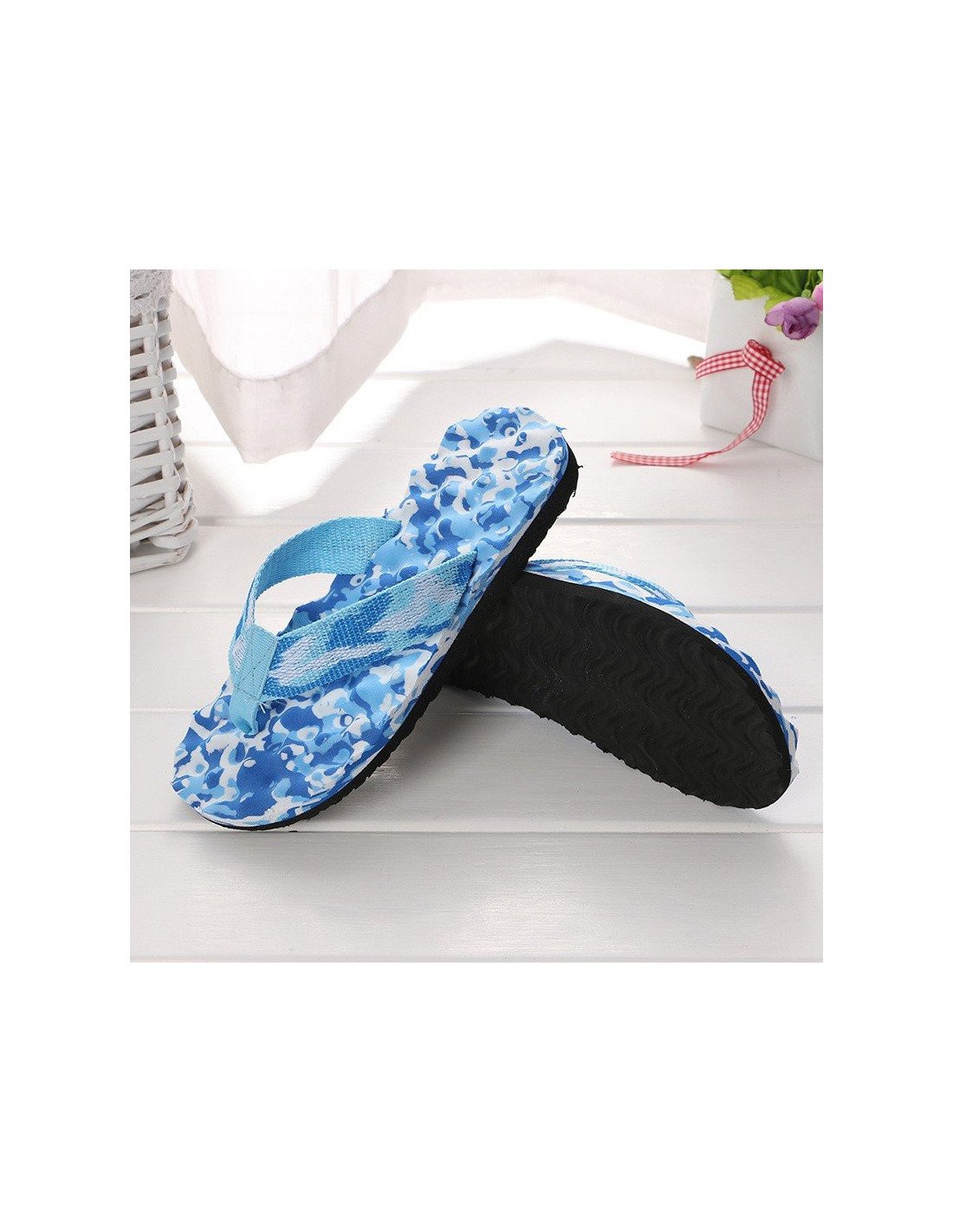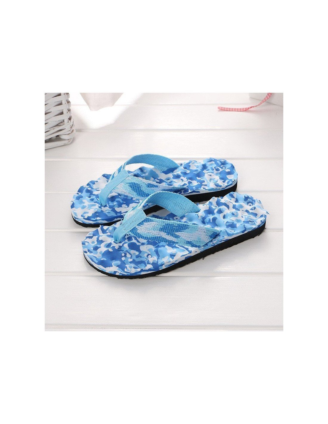 Sandalias de verano para mujer son la elección perfecta para un look fresco y colorido. La suela presenta un vibrante patrón en tonos de azul y blanco, que añade un toque de diversión y estilo a cualquier atuendo. La combinación de colores y el diseño único hacen que estas sandalias se destaquen y aporten un aire alegre y juvenil. Las tiras están confeccionadas en un material tejido de color azul claro, que combina perfectamente con los colores de la suela. |