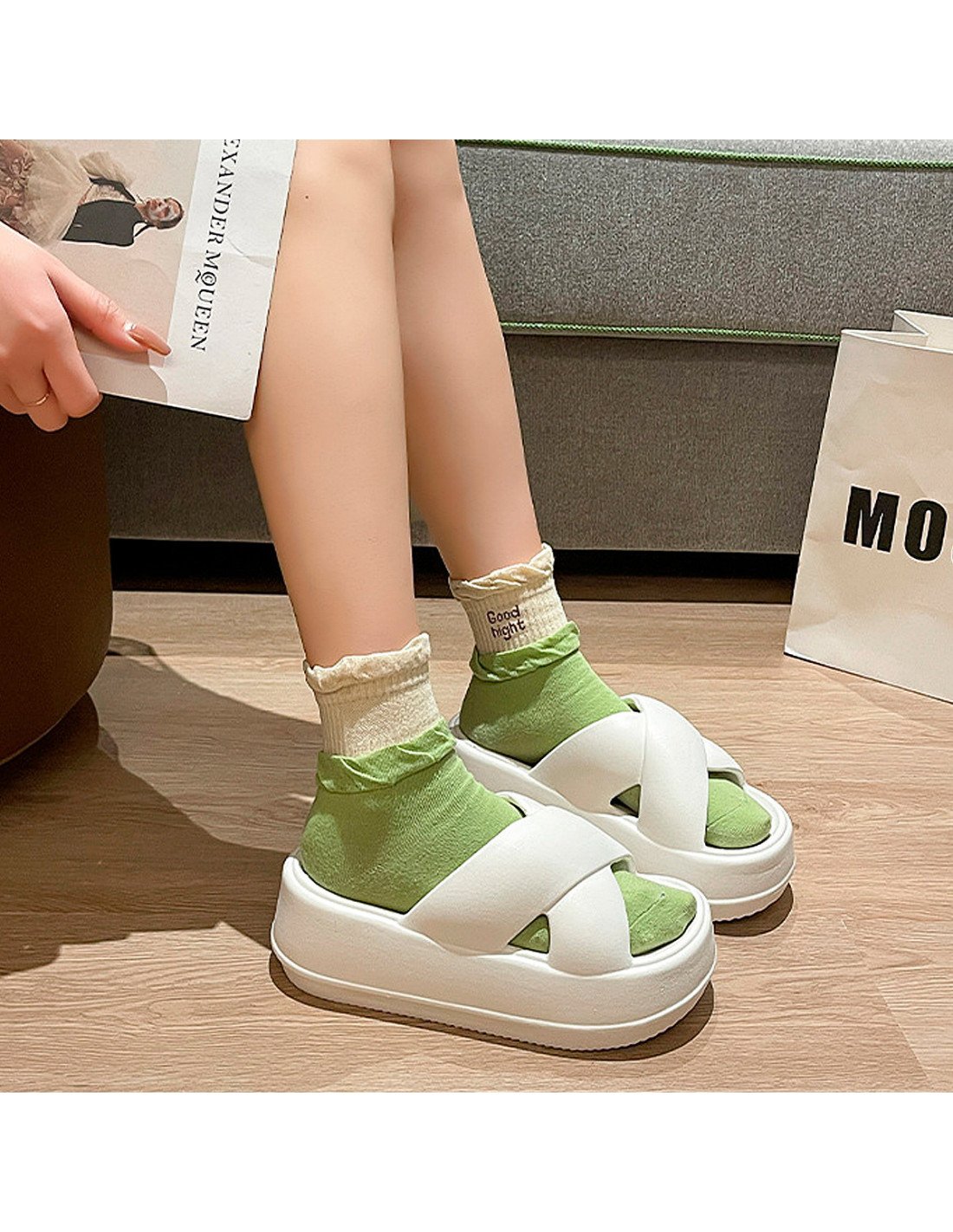 Sandalias blancas de plataforma son el complemento perfecto para quien busca confort y estilo en un solo producto. El diseño sencillo con tiras anchas proporciona un soporte adecuado y una ventilación óptima, ideal para los días cálidos. La plataforma no solo añade un toque moderno al diseño, sino que también ofrece una amortiguación extra para mantener la comodidad durante todo el día. El color blanco hace que sean extremadamente versátiles y fáciles de combinar con una gran variedad de atuendos, desde vestidos ligeros hasta jeans y shorts. |