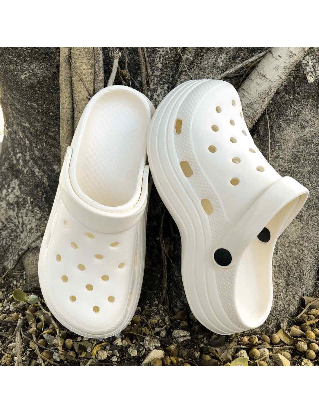 Sandalia para dama EVA blanca suela suave ultragruesa importadas al mayoreo |