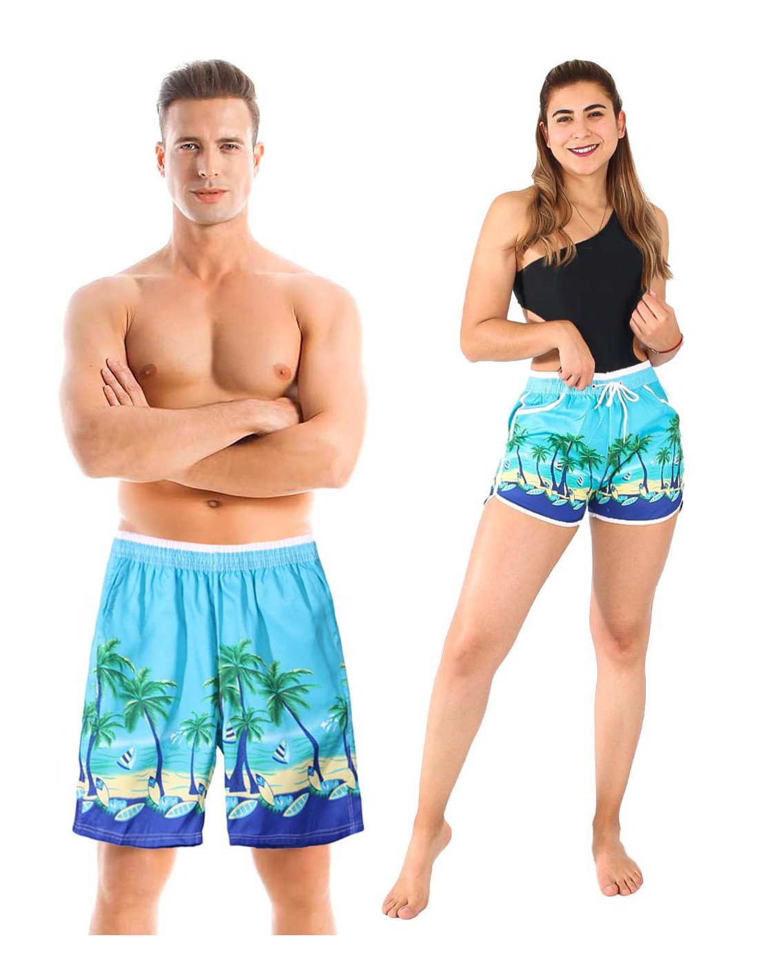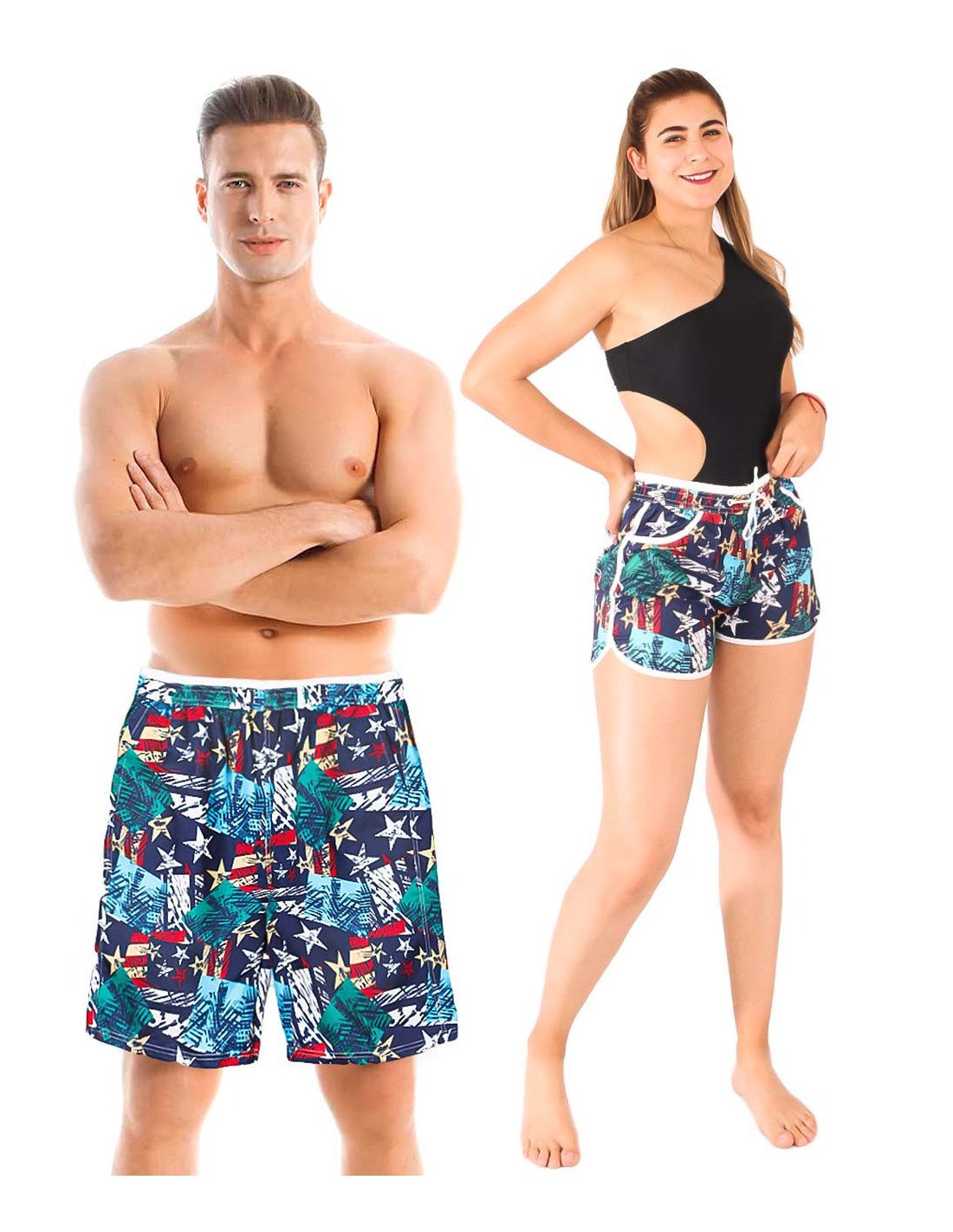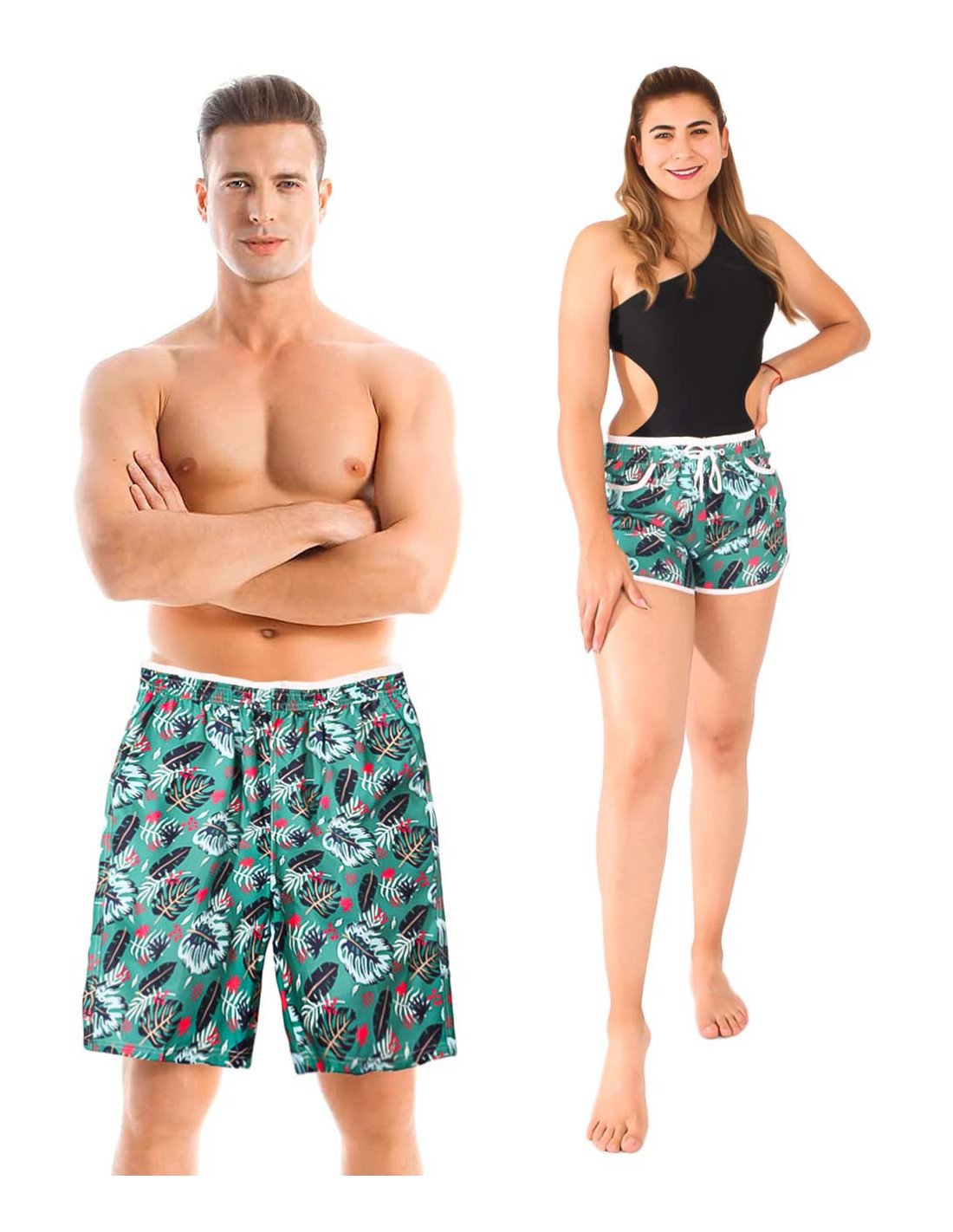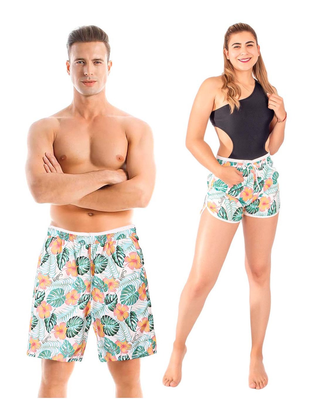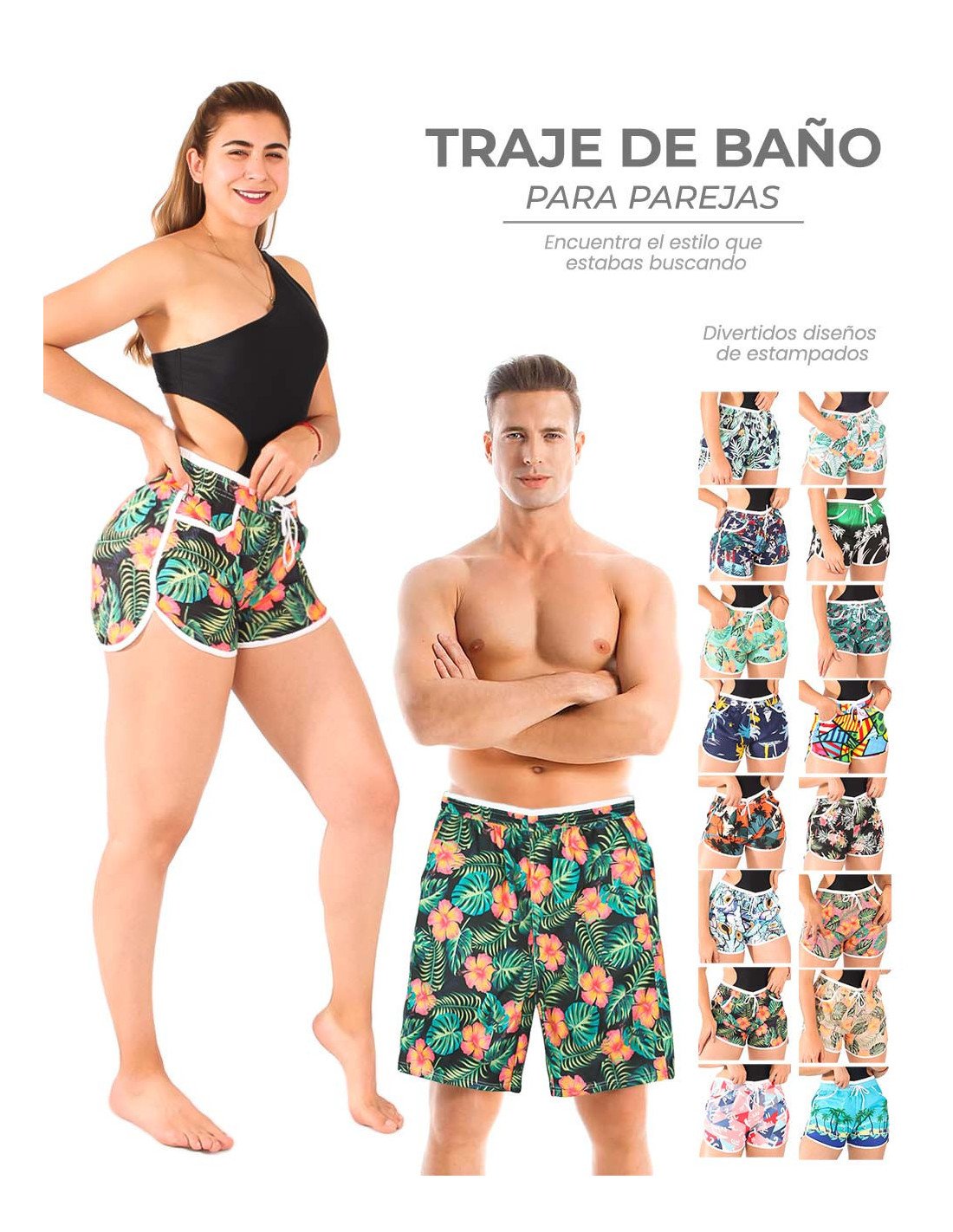Traje de Baño a Juego para Parejas, Ropa de Playa. Hechos de material: poliéster + elastano, los shorts para hombre y mujer están hechos de un material de secado rápido, liviano y pueden evitar que se peguen al cuerpo cuando están mojados en el agua. |