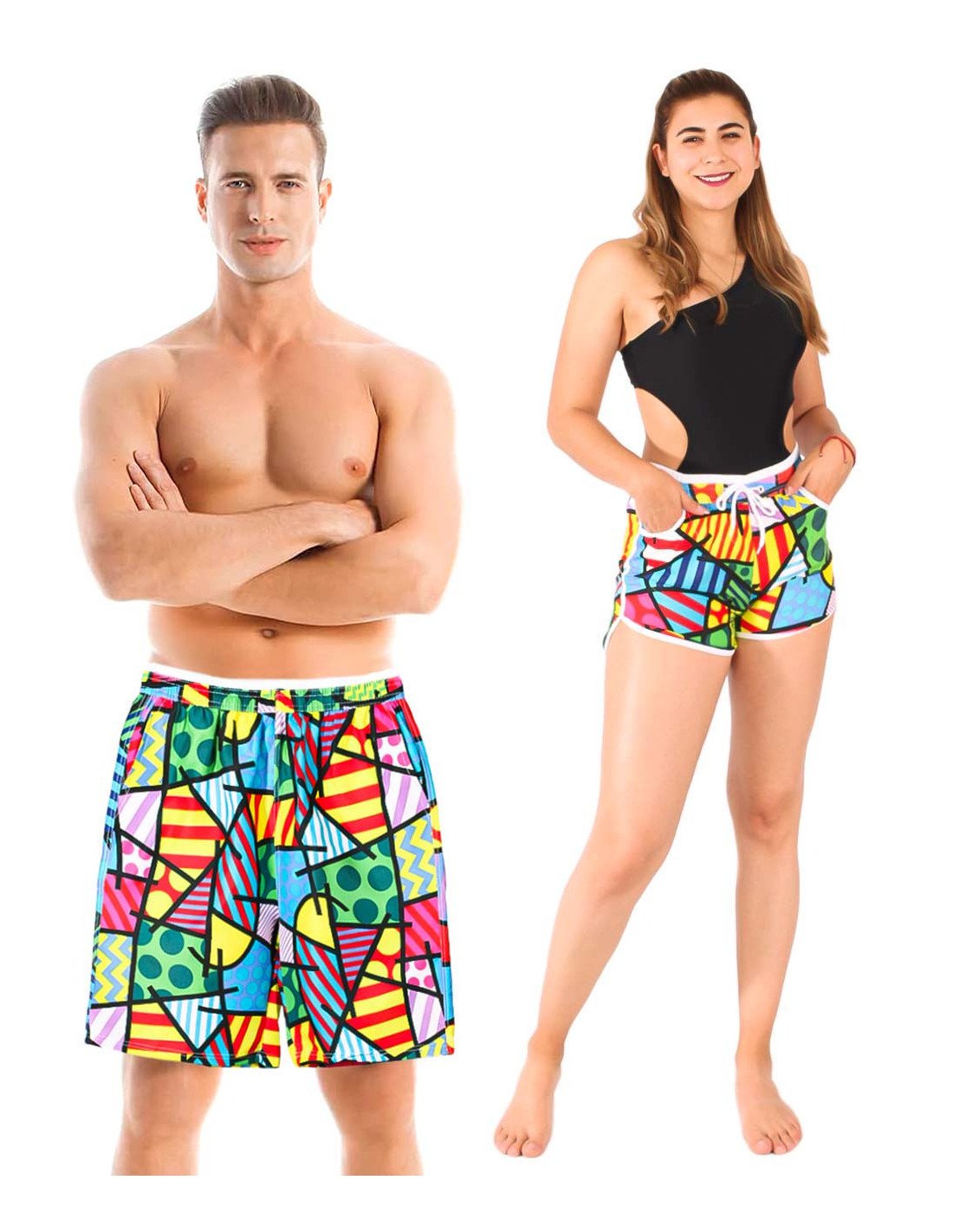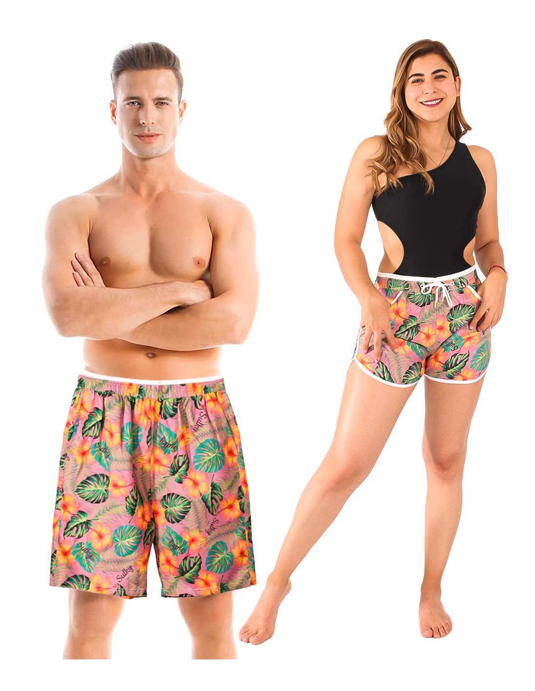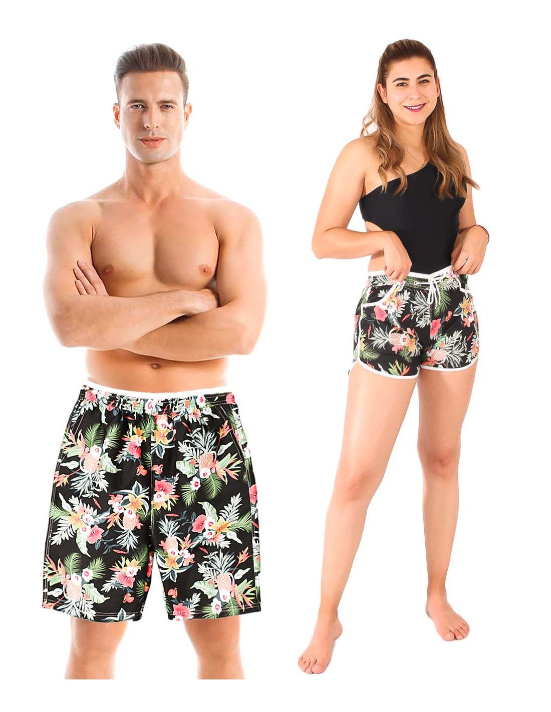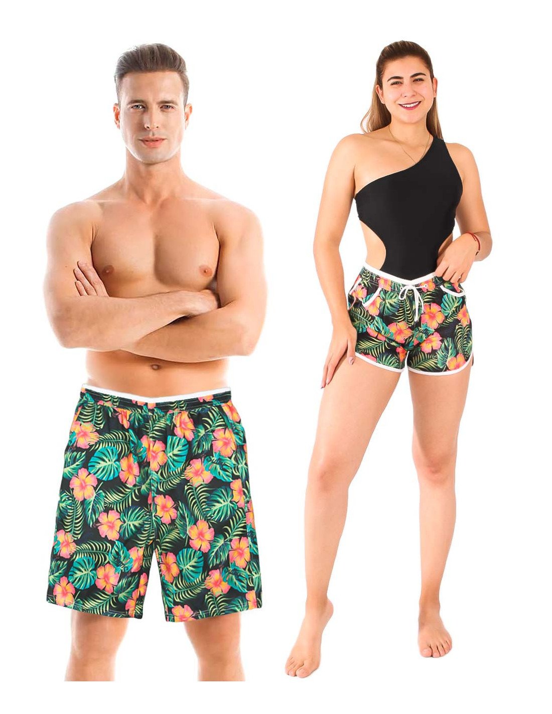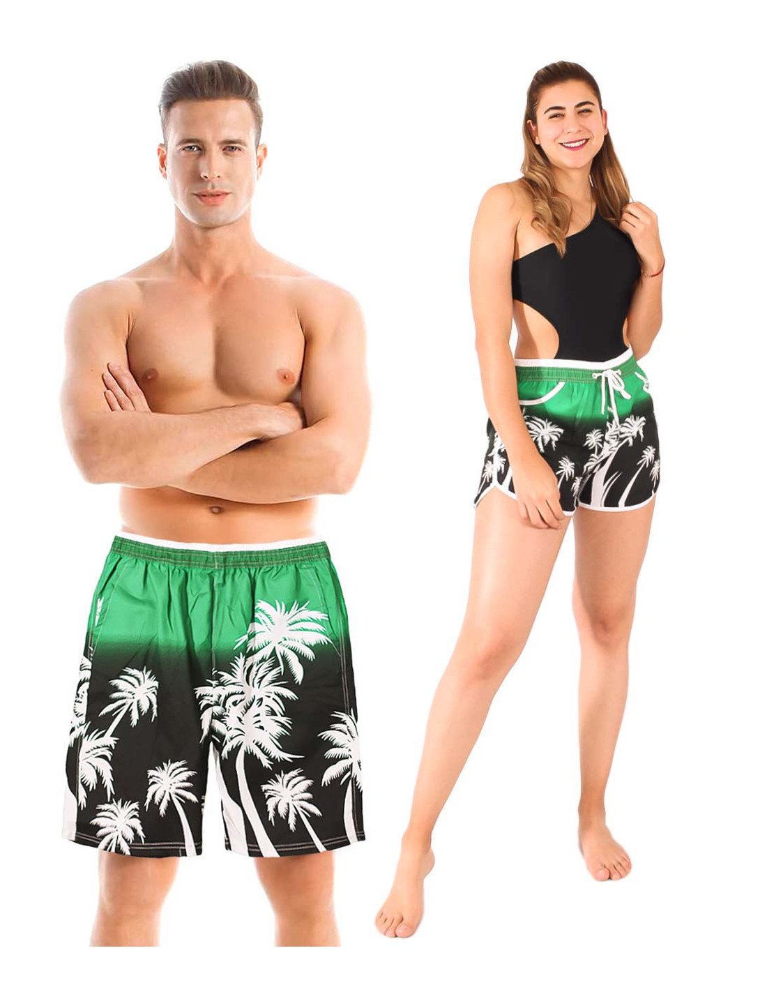Traje de Baño a Juego para Parejas, Ropa de Playa. Hechos de material: poliéster + elastano, los shorts para hombre y mujer están hechos de un material de secado rápido, liviano y pueden evitar que se peguen al cuerpo cuando están mojados en el agua. |