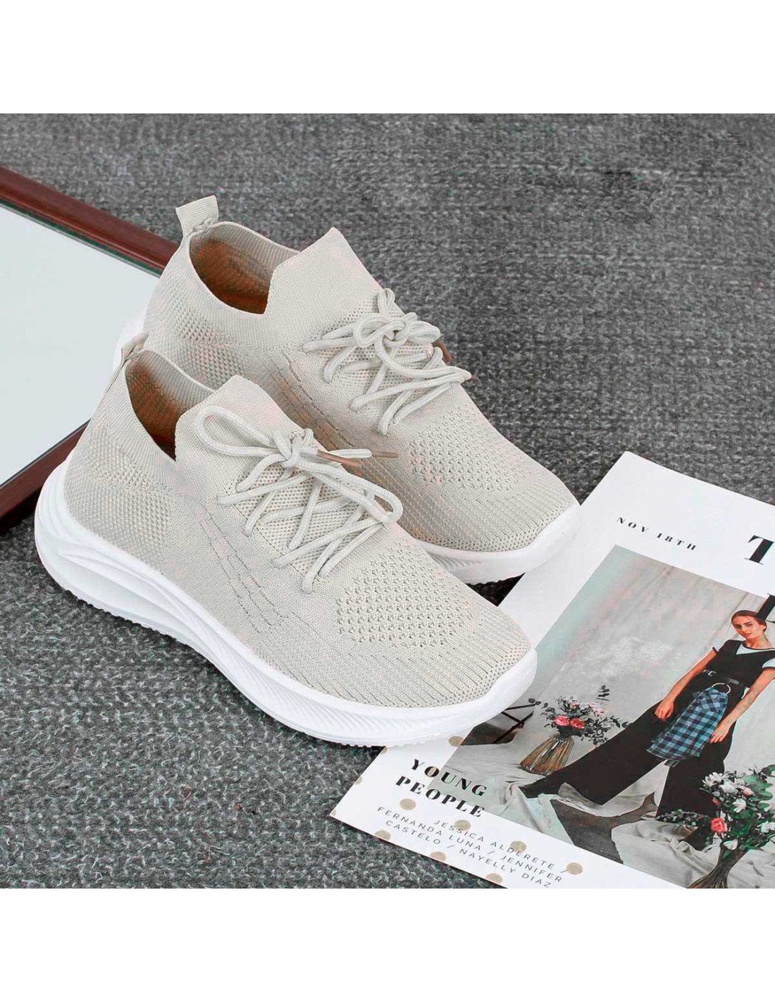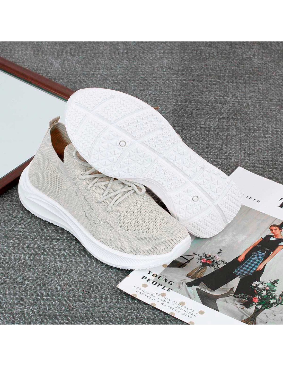 Tenis Deportivo de Inyección para Mujer Beige suela blanca importados al mayoreo |