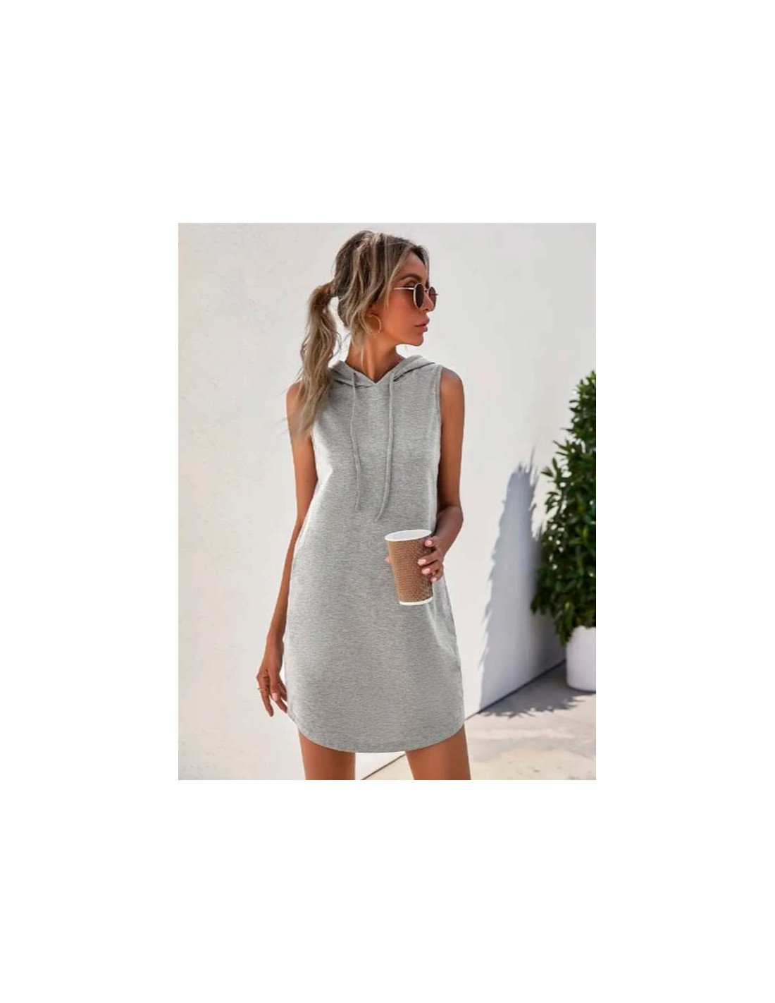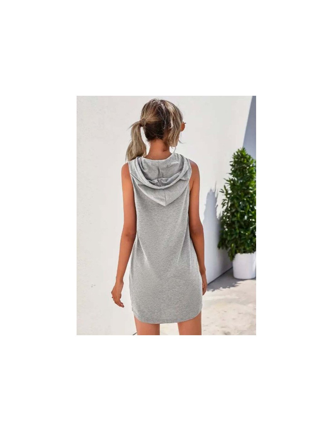 Vestido con Capucha sin Mangas Deportivo Corto de color Sólido para Mujer