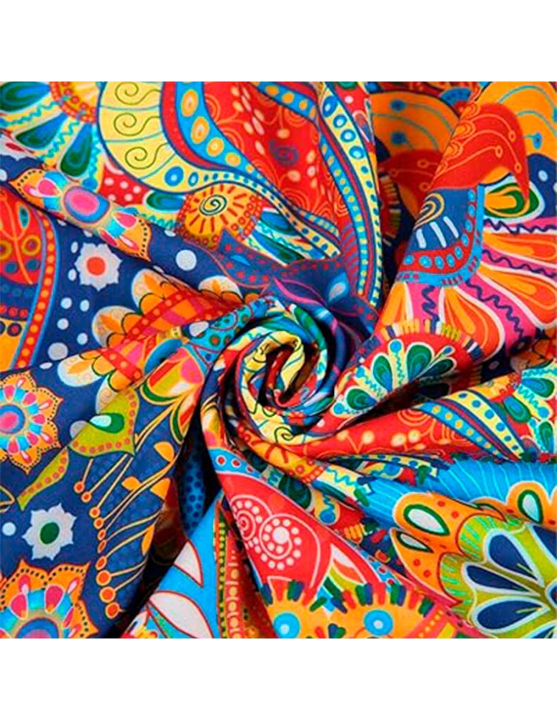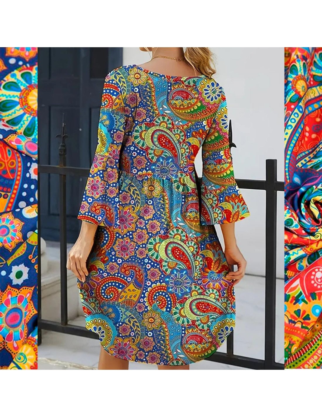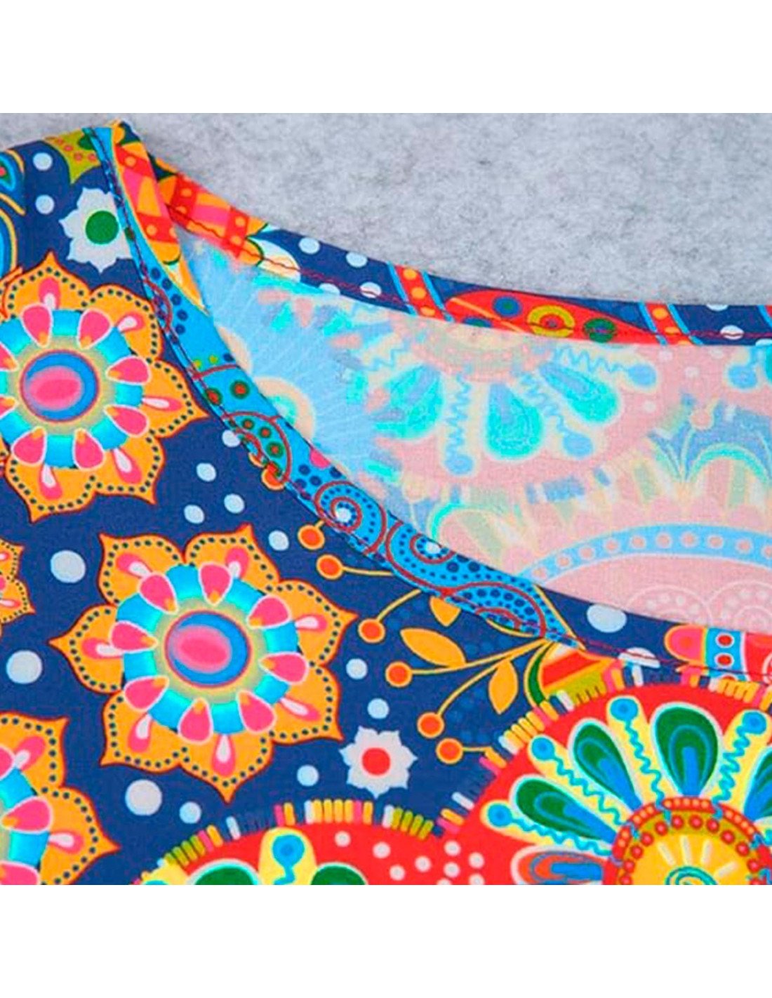 Vestido de verano con estampado étnico y colores vibrantes para dama |